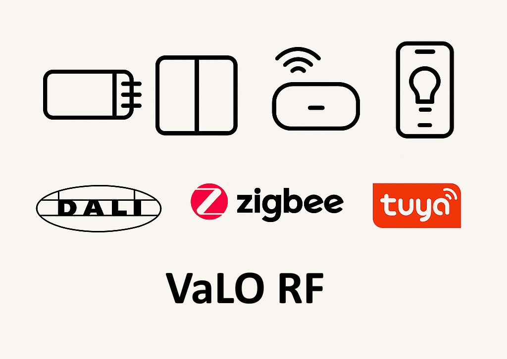 - Controllers or power supplies with a controller that support the desired control system (e.g. Zigbee, DALI, Tuya or VaLO RF).